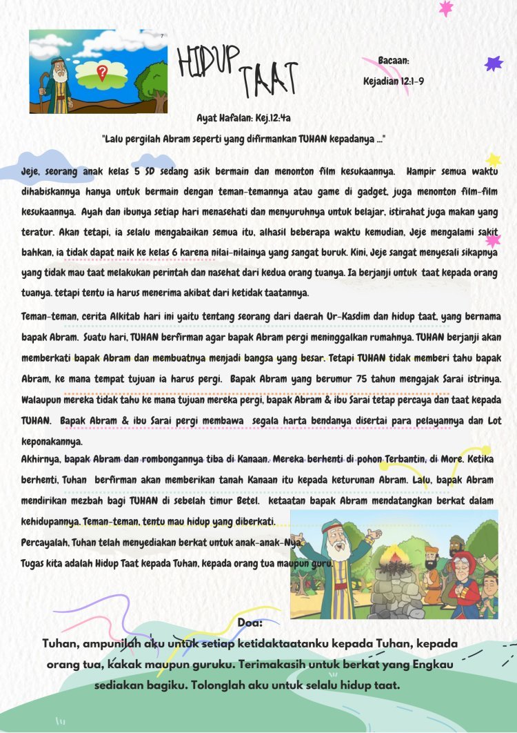 Ayat Hafalan: Kej.12:4a "Lalu pergilah Abram seperti yang difirmankan TUHAN kepadanya ..."
